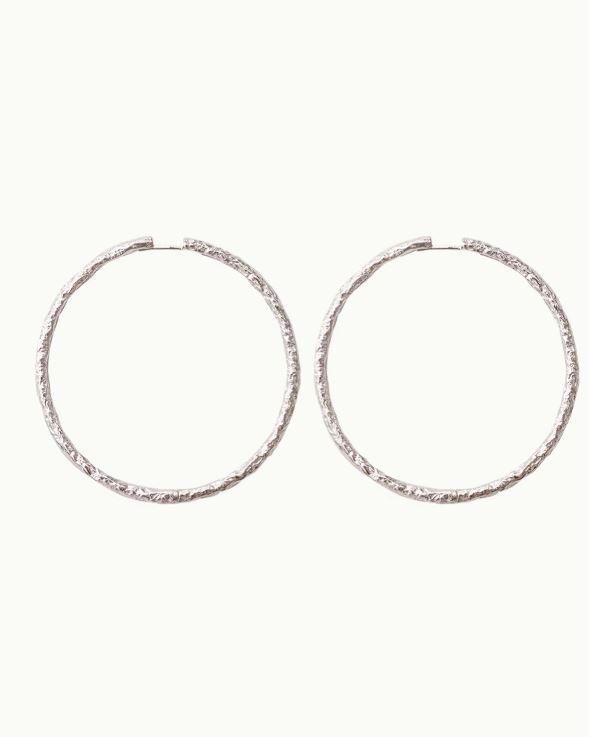 Es nuestra versión más XL y más flamenca de nuestros aros Flamenco. Aros hipoalergénicos comodísimos. Como sus hermanos pequeños tienen la misma superficie rugosa, delicada e imperfecta a la vez.  Su tamaño no está reñido con el peso, son ligeros y estables gracias al cierre criolla. Hechos enteramente en plata 925.
