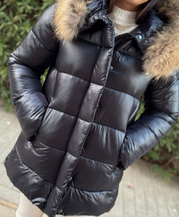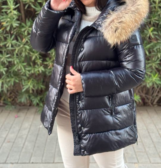 Plumífero Canadian con pelo natural en capucha en color azul marino. Un modelo todo terreno ideal para el día a día y super combinable con todo. Con una largura genial, para las que no os guste ni cortos ni largura 3/4.