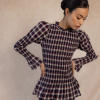 La Falda Elio es una prenda sofisticada y versátil que combina el encanto del estampado de cuadros con un diseño moderno y favorecedor. Confeccionada en un tejido ligero en tonos burdeos, azul y blanco, es ideal para crear looks llenos de estilo con un aire atemporal.