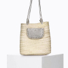 Combina con elegancia el doum natural y la piel de cordero color oro claro , para una cesta gráfica, ligera y decididamente moderna.
