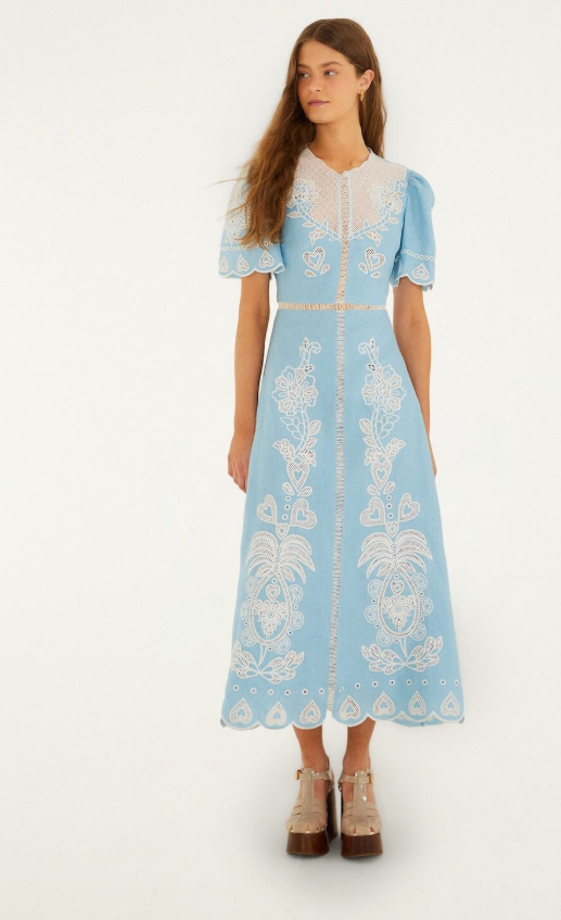 FARM RIO vestido midi light blue embroided - Imagen 2