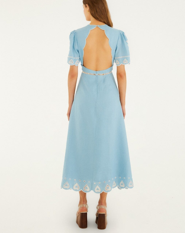 FARM RIO vestido midi light blue embroided - Imagen 4