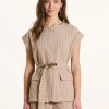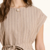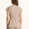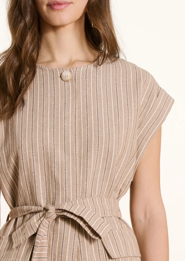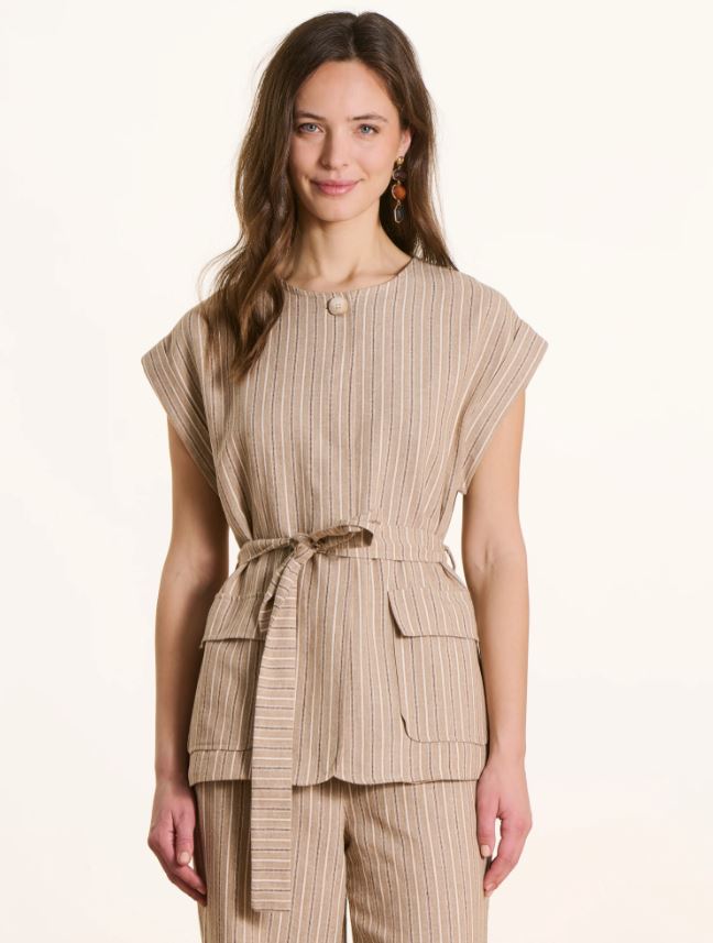 Chaqueta a rayas con cinturón en mezcla de algodón y lino