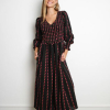 Vestido femenino, parte de arriba engomada, escote V, manga larga abullonada con puño elástico.