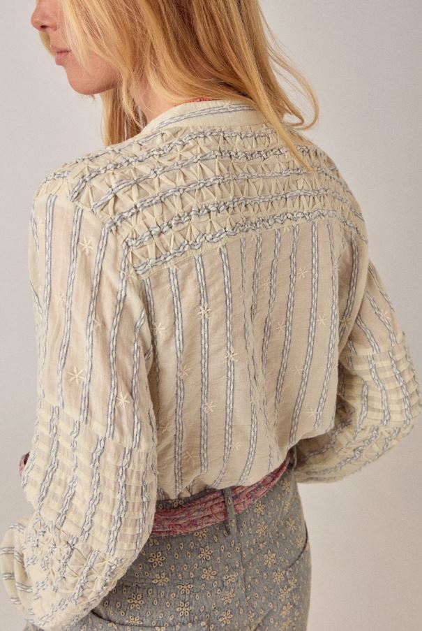 Llévala abierta o cerrada, con las mangas remangadas o bajadas. Combina con pantalones o vaqueros de talle alto Theodore. Romántica de forma natural. Íntima sin ser pretenciosa.