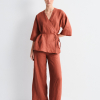 Kimono de lino con manga tres cuartos y cierre mediante lazada. Forma parte de la familia Bobby, junto a los pantalones y la camisa del mismo tejido, para un conjunto sereno y sofisticado.