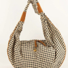 Gran bolso hobo fléxible en algodón con cuadros madras y paneles en ante de piel de vacuno. Asa flexible anudable para llevarlo cruzado o al hombro. Cierre de cremallera.