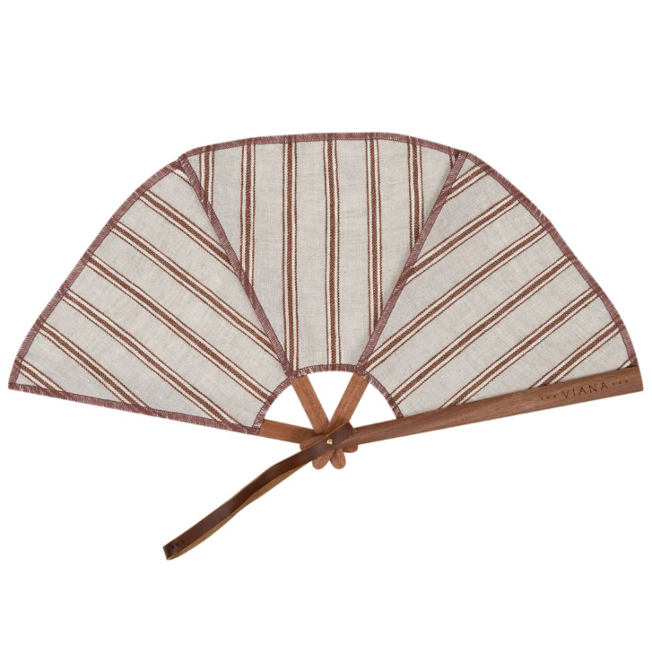 Abanico artesanal elaborado con tela de lino 100% natural de calidad única, el complemento elegante y perfecto para regalar o llevar como invitada.