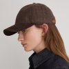Gorra de lana con estampado de cuadros marrón chocolate y visera de pana marrón.